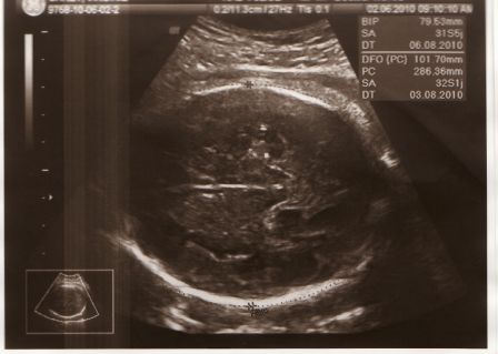 Bébé a désormais 7 mois. L'échographie - 02 juin - montre a nouveau que tout est normal. La petite puce fait maintenant 1,800 kg. Ceci est un poids normal à ce stade de la grossesse.